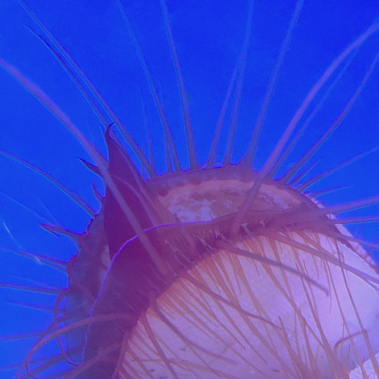 Known for its vibrant red mantle and the striking blue “electric” streaks that it generates using bioluminescence.