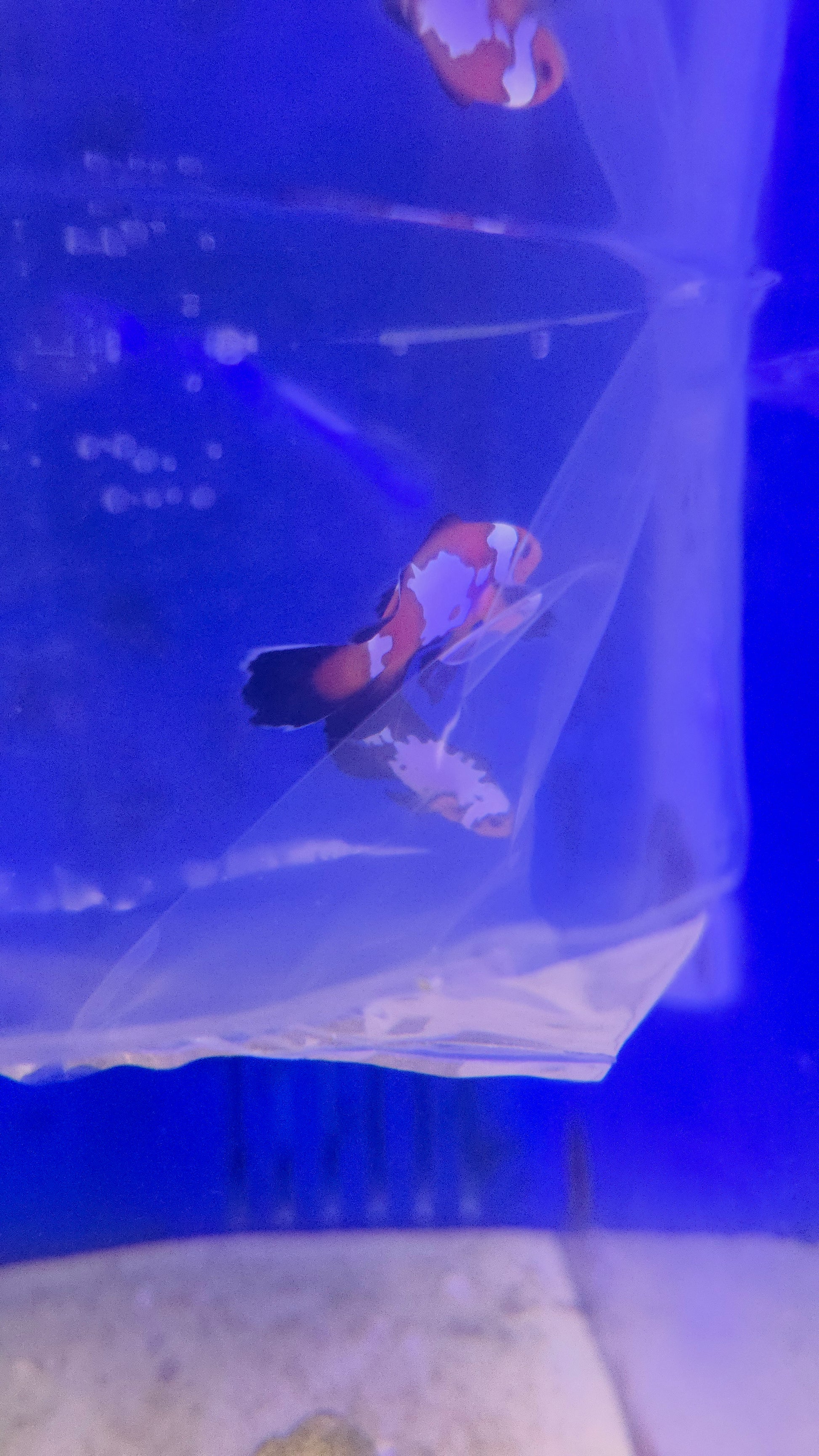 Beautiful pair of extreme grade longfin black ice snowflake clownfish! Super rare and super pretty. These are the only pair we have like this and are confident that they will not last long here befor going to their forever home!!